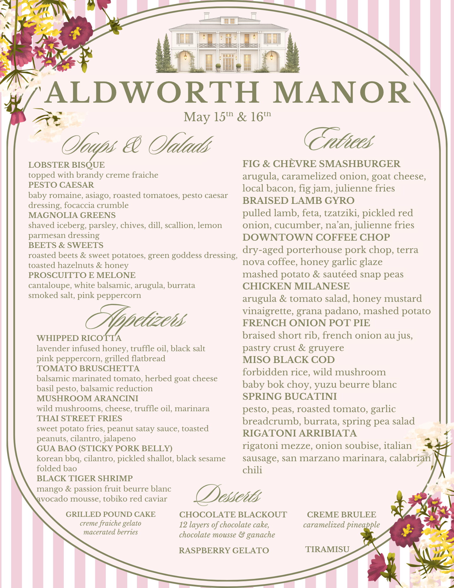 Please note that a few items may vary from day-of menu, due to variations in delivery or product availability.
