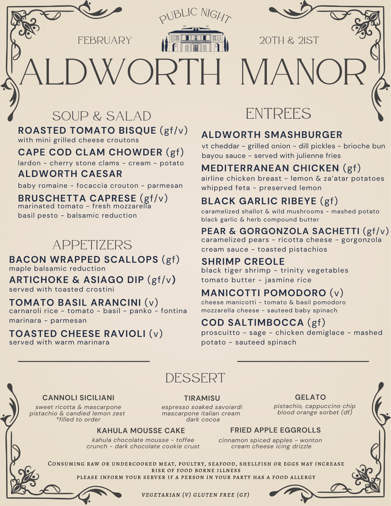 Many Wine, Beer, Liquor & Specialty Cocktail options available each Public Night